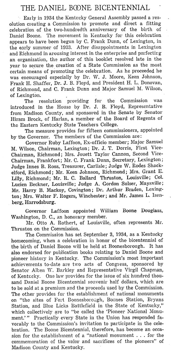 See an article about the 1934 Daniel Boone Bi-Centennial. Douglass was named an honorary member of the Commission that planned and oversaw this event in Kentucky.