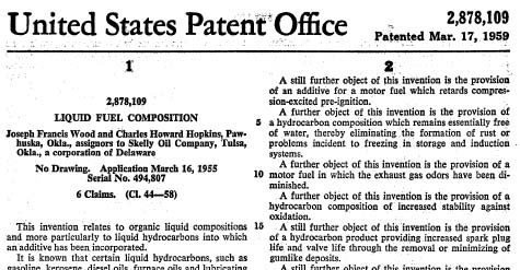 S 2,878,109 Liquid Fuel Composition (17 Mar 1959, Skelly Oil Co.)*