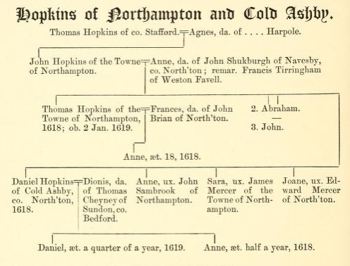 | Hopkins of Northampton and Cold Ashby | Walter Charles Metcalf, ed.,The visitations of Northamptonshire made in 1564 and 1618-19, p. 100. Descendants of Thomas Hopkins of Staffordshire. |