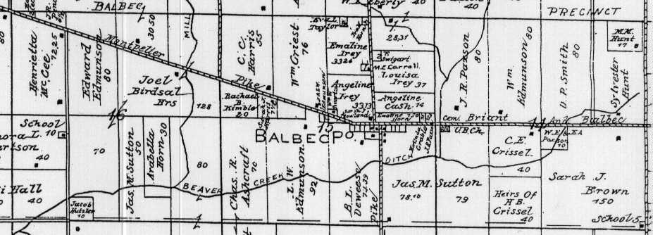 The third source is a map published in 1901 showing land ownership, as in the 1874 map. This map only covers Penn Township. I transcribed the names that were of interest to me, which correspond closely to those found in the earlier map and the deed index. There is also a scanned image (57k) of sections 14-16 of that map for comparison to the one above.