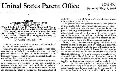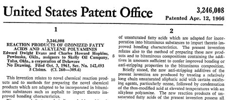 S 3,249,451 Anti-Stripping Agents for Bituminous Materials (3 May 1966, Skelly Oil Co.)